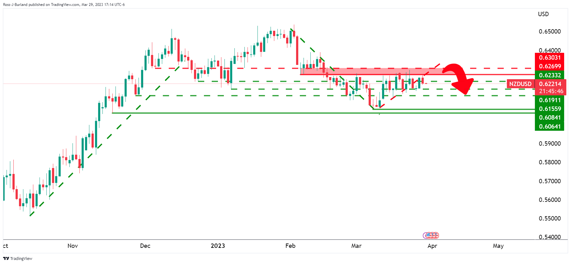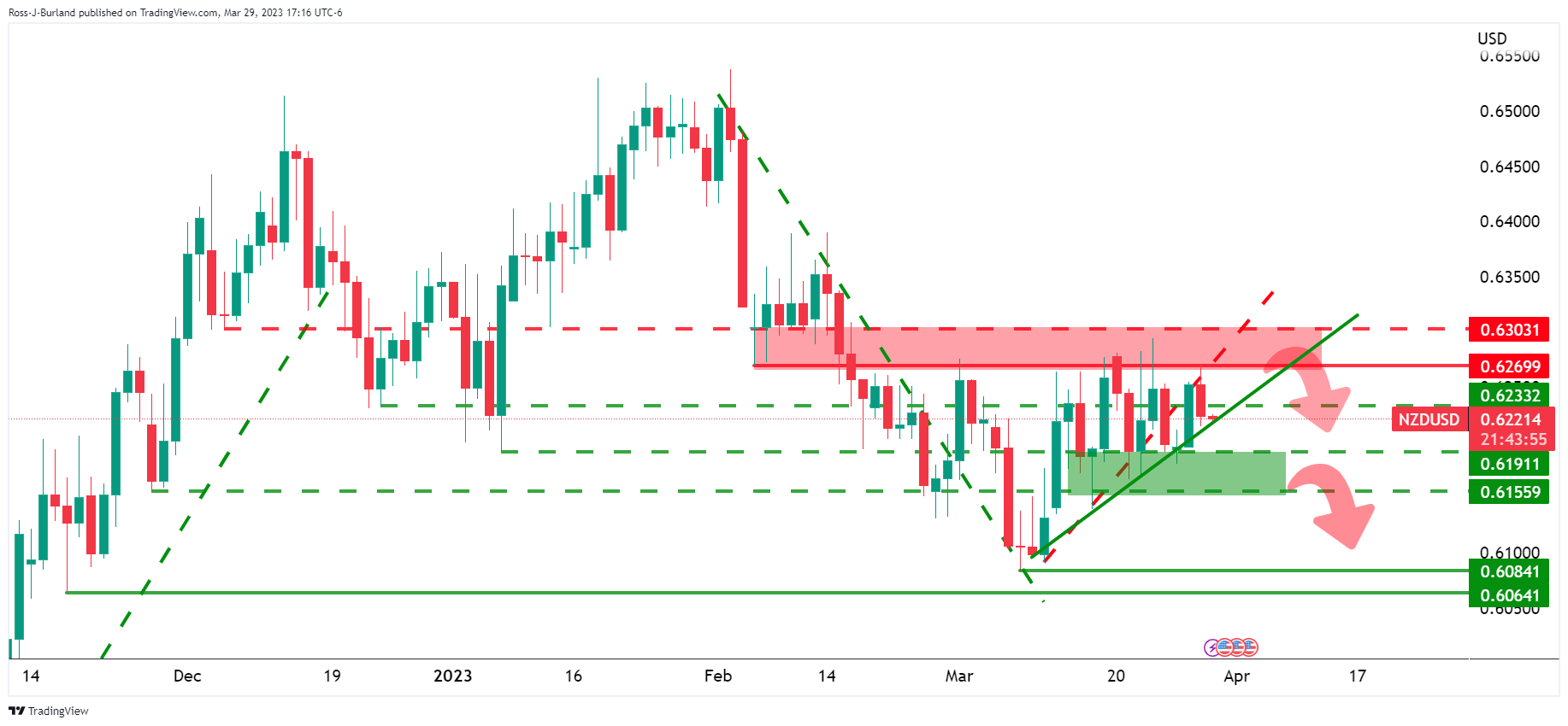 纽元/美元周三交易相对平静后,到目前為止,日内表现平平。纽元/美元坚持在0.6220附近的震盪范围内,因為人们越来越期待新西兰储备银行在下周的会议上会将官方现金利率提高25bps至5.0%,并在5月再次加息至5.25%。