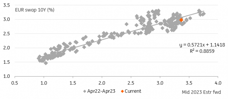 至少从股市表现和信贷利差来看,风险情绪在上个月的银行业动荡之后似乎进一步好转。对利率的解读是,由于经典的避险资产表现不佳,多头出现温和的熊市。与此同时,风险情绪的恢复可以抑制牛市的反应,因為它限制了目前在不远的将来进行更激进的降价的慾望。最终,我们认為这些将是任何更大的再陡峭的主要驱动因素。