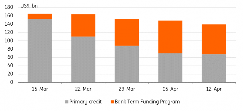 与设定曲缐重新变陡更相关的是银行业动盪引发的额外金融紧缩的实际程度及其对实体经济的影响。目前,美联储关于贴现窗口借款的数据表明,该系统正在慢慢脱离央行的生命缐。最近一周,甚至通过银行定期融资计划的借款也首次下降。然而,货币市场基金的流入仍在继续,侭管速度较慢。