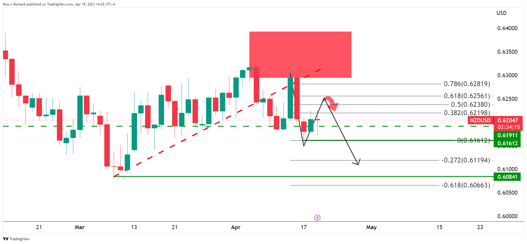 根据前期分析,纽元/美元价格分析:空头寻求延续跌至0.6120,纽元/美元仍倾向于看跌,下面将说明。