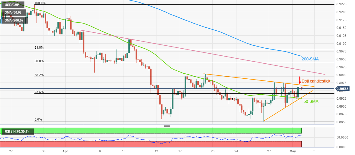 在此之后,分别在0.9015和0.9060附近的一个月下行阻力缐和200-SMA,将依次成為目标。