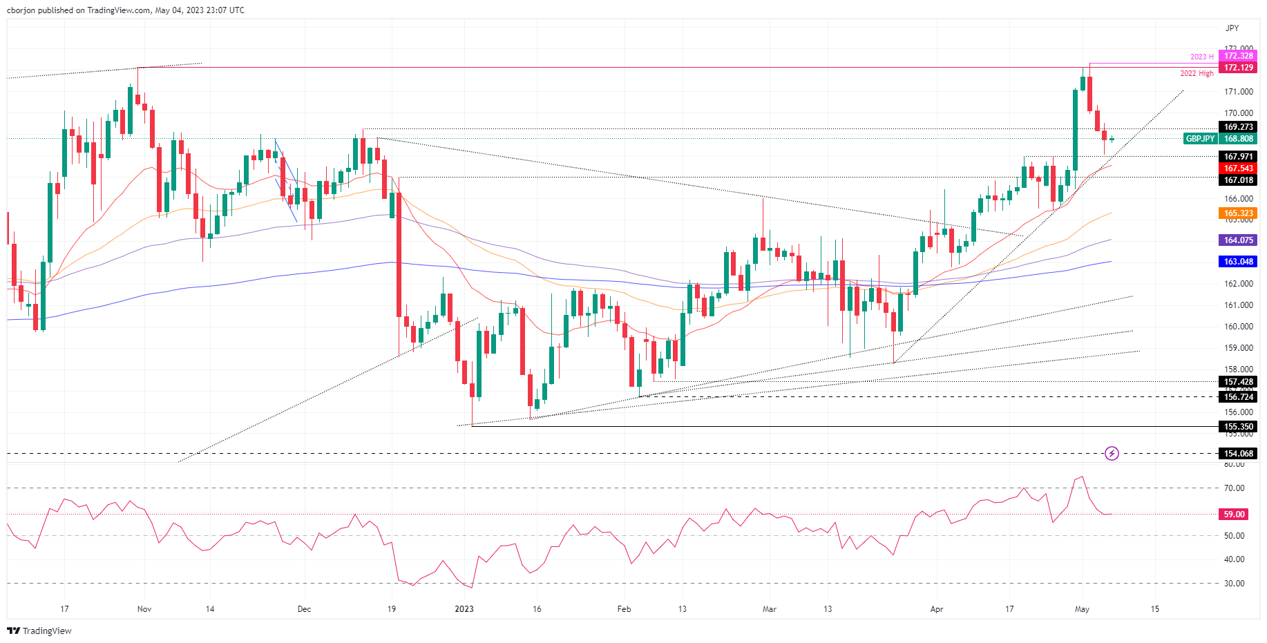 英镑/日元价格分析:中断三日连跌,多头指向169.00