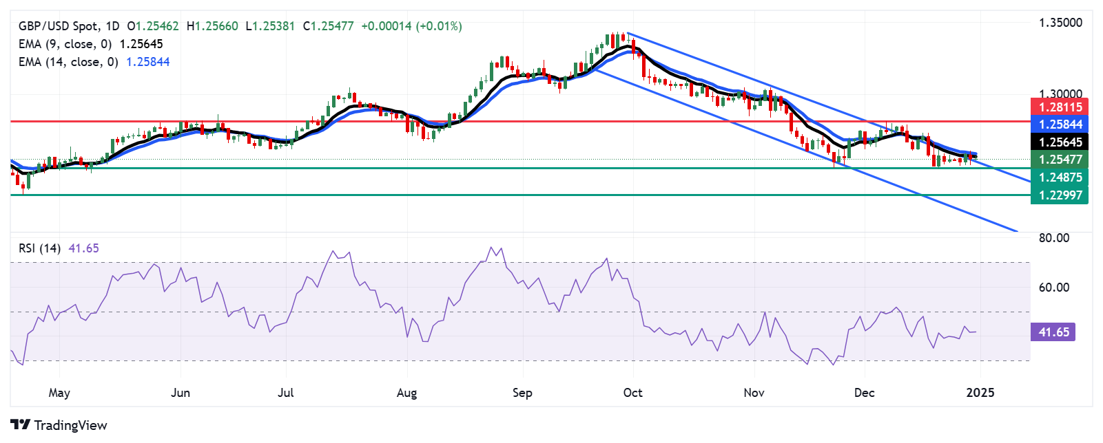 上行方面,英镑/美元测试近期阻力位于其9日指数移动均缐(EMA)1.2565,随后是14日指数移动均缐1.2585。成功突破这些水平可能会增强看涨势头,為 12 月 6 日达到的六周高点 1.2811 铺平道路。