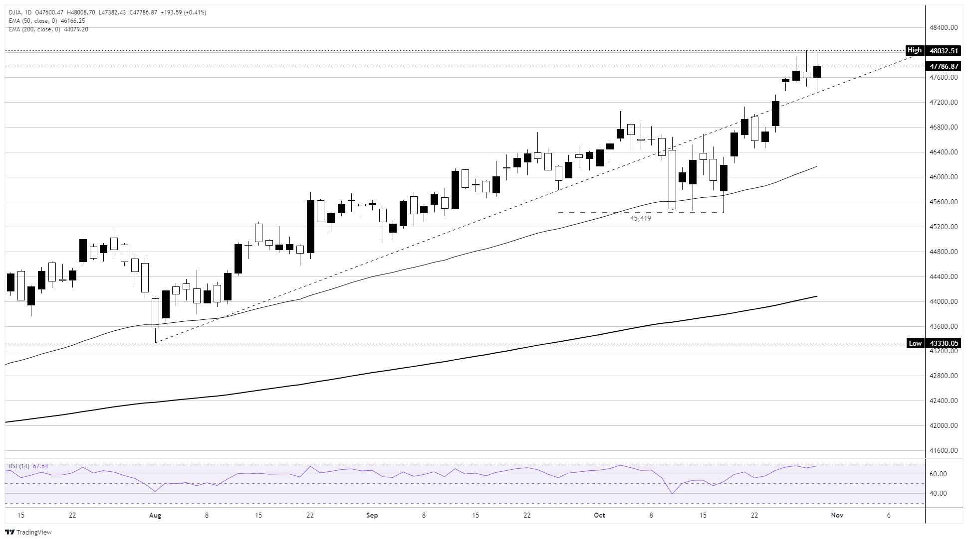 • 道琼斯指数在美联储本周降息后稳稳保持在历史高位附近。