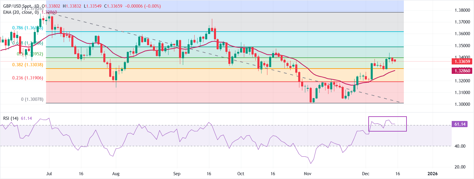 • 总体而言,英镑/美元走势乐观,因為美元在八周低点附近徘徊,市场对美联储将在2026年进行更多降息的预期不断增加,超出官员上周在点阵图中所暗示的。