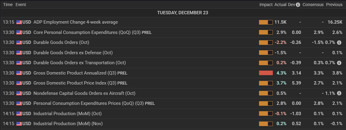 市场消化了一份延迟但备受关注的经济报告,显示美国国内生产总值(GDP)在第三季度以4.3%的年化速度增长,显著超出预期。增长主要得益于消费者支出的韧性,较上季度有所加速。意外的上行数据在交易时段初期短暂扰动了市场,投资者重新评估美联储(Fed)可能多快会降低利率。侭管最初有所犹豫,但随著交易者保持对明年多次降息的信心,股票恢复了上涨。
