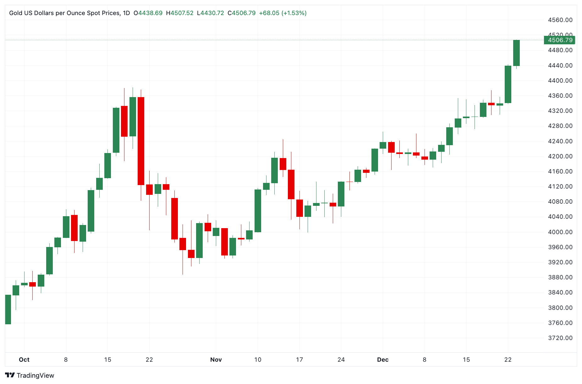 突发:黄金因避险资金流入上涨至4500美元以上的历史新高