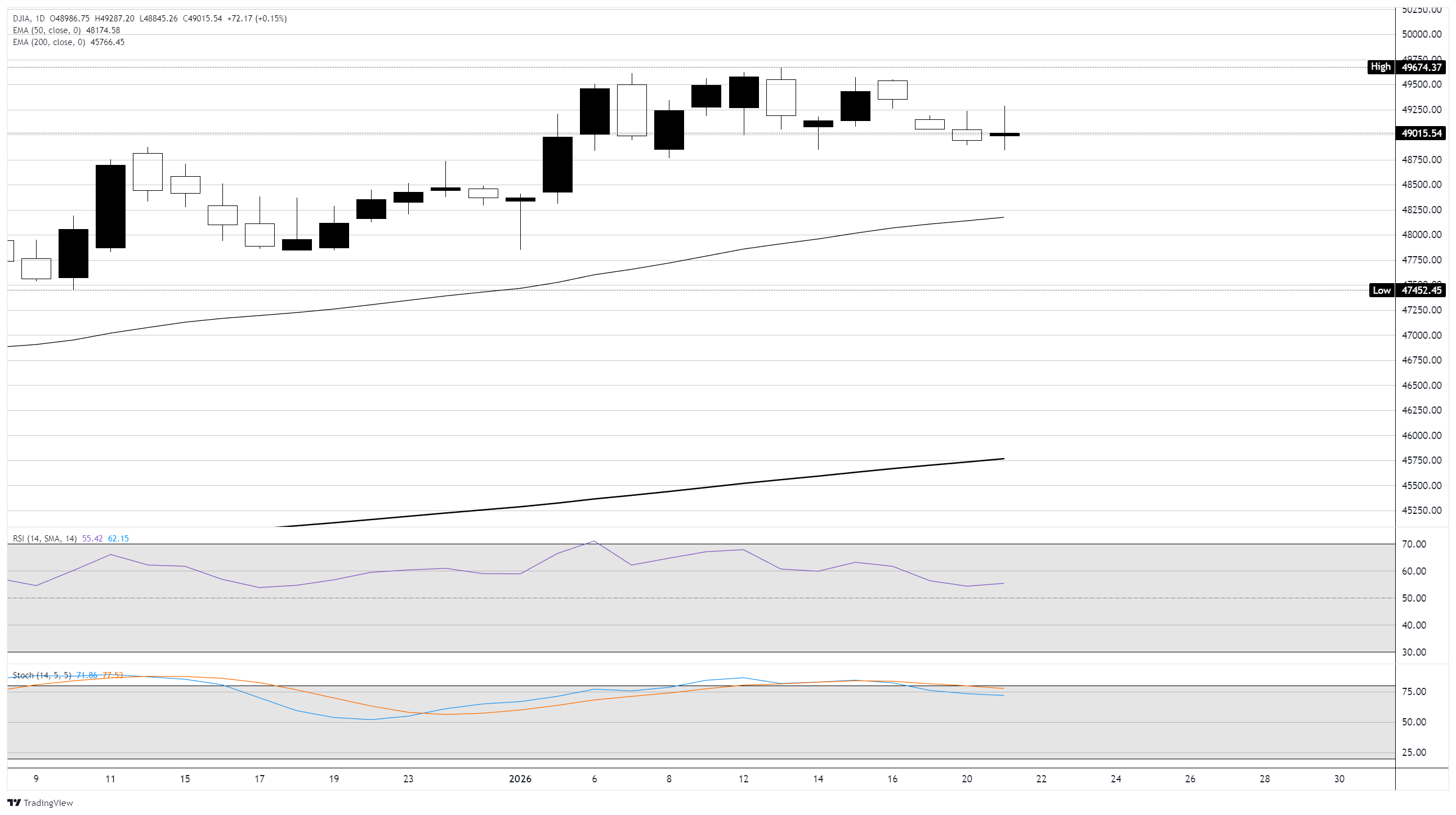道琼斯工业平均指数上涨约160点,或0.33%,标准普尔500指数上涨0.25%,纳斯达克综合指数仅上涨0.1%。侭管早盘涨幅更為明显,但随著投资者权衡美国与欧洲之间持续的关税风险,股市从高位回落。侭管排除了军事行动,特朗普重申他正在寻求就格林兰进行立即谈判,保持了地缘政治的不确定性。