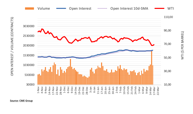 WTI原油价格在周四再次跌至65.00美元关口附近的底部后,在小幅上涨中呈现出犹豫不决的走势。这一走势是在未平仓合约不断上升的背景下出现的,这表明极短期内有可能出现反弹。到目前為止,油价似乎在每桶65.00美元附近得到了很好的支撑。