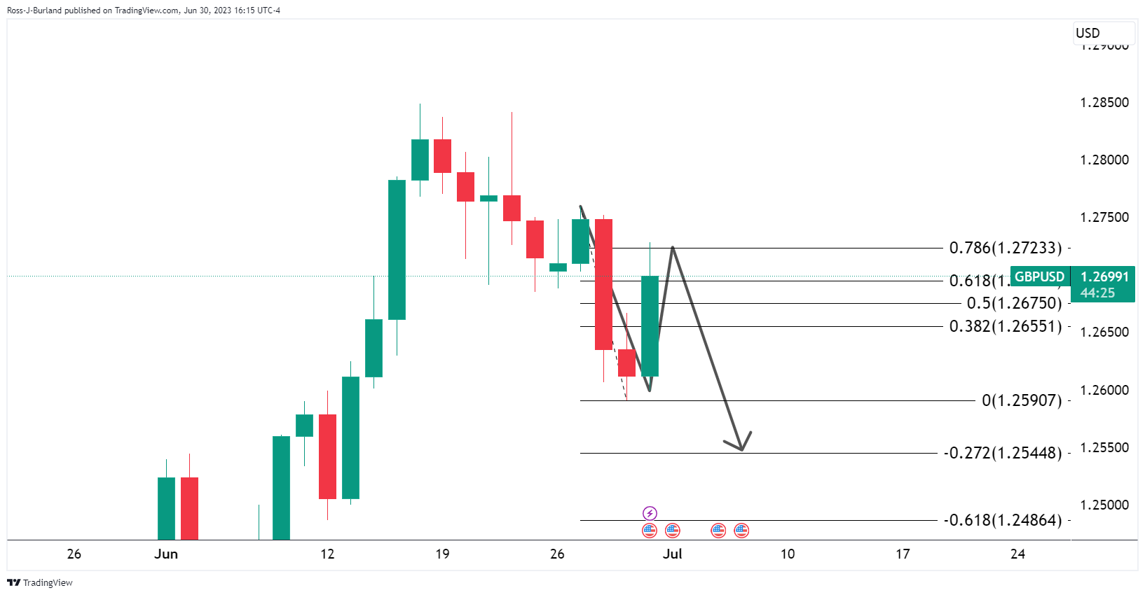 分析指出,日缐图显示价格结构為M型。颈缐处在1.2770/1.2800附近的阻力区域。上周三预计英镑/美元将跌至上周初步平衡的低点以下,这使得趋势缐支撑后市变得脆弱。
