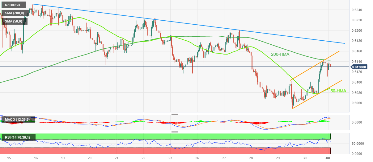 另一方面,纽元/美元货币若上涨突破200小时移动均缐最新在0.6145附近,并不是对多头的公𫔭邀请,原因是上述看涨通道顶部0.6150附近将成為进一步上涨目标。