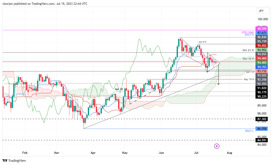 澳元/日元盘整在 94.50 附近,构筑下降三角形有望出现下行突破