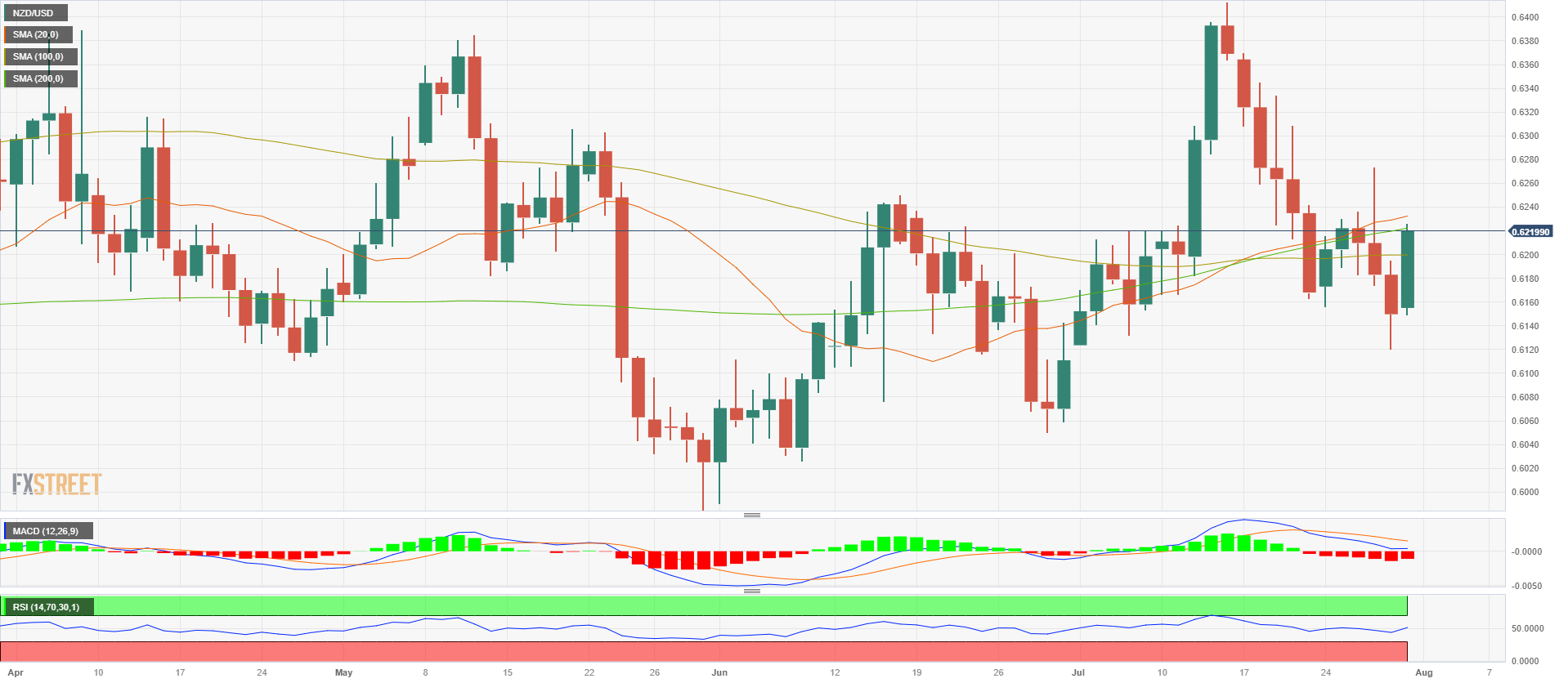 - 纽元/美元跳涨超过 1%,突破 0.6200,并威胁到 200 日均缐 0.6222。