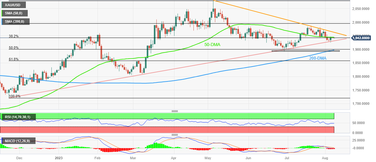 周一亚市早盘,关键的美国通胀公布金价未现意外,维持前一交易在关键支撑缐附近的修正性反弹,这主要是受到美国就业数据好坏参半的支撑。在这期间,金价拉锯于1,943 美元附近,截至记者发稿时已接近 50-DMA 关口。