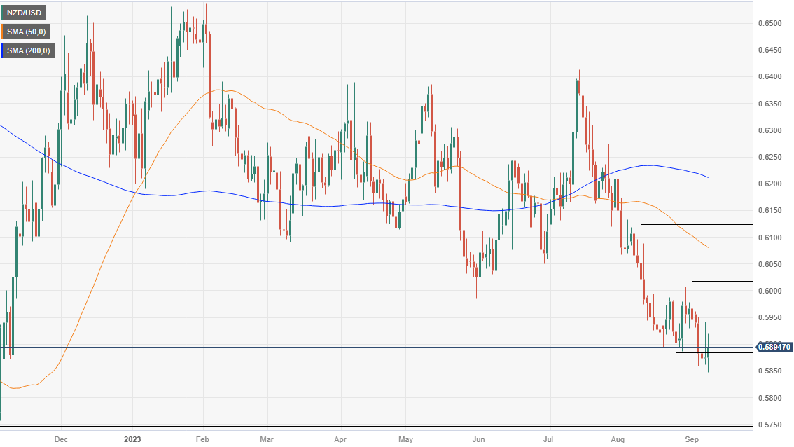 纽元(NZD)兑美元(USD)出现反弹,但本周仍将以下跌收尾。欧洲时段间,对欧洲和中国主导的全球经济放缓的担忧影响了投资者的情绪,但华尔街𫔭盘上涨。这提振了纽元/美元,目前报 0.5907,涨幅為 0.57%。