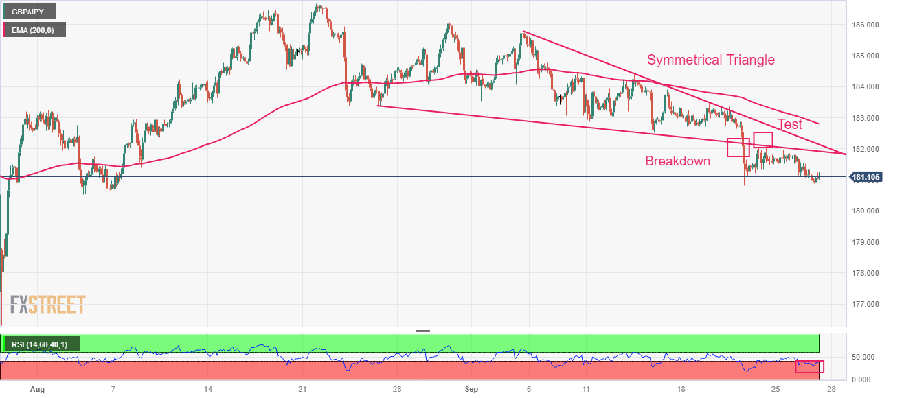 英镑/日圆价格分析:在 181.00 附近找到临时支撑,但大趋势仍倾向于走软