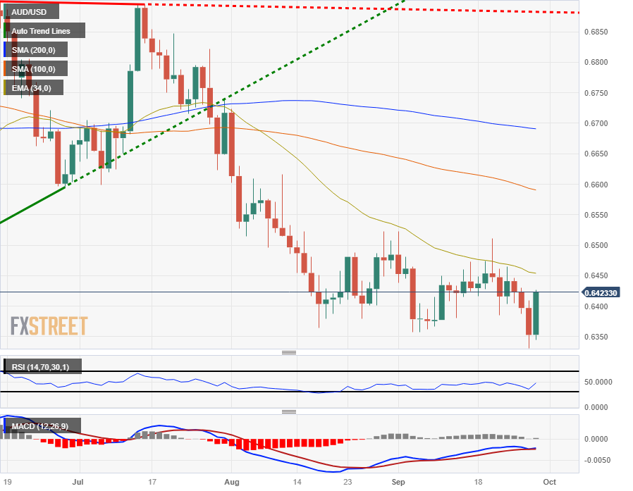 澳元/美元从0.6340附近的近期低点获得了急需的反弹,该货币对在周四收复0.6400关口后上涨了1%以上。澳元兑美元目前在 0.6420 附近的区域稍作喘息。