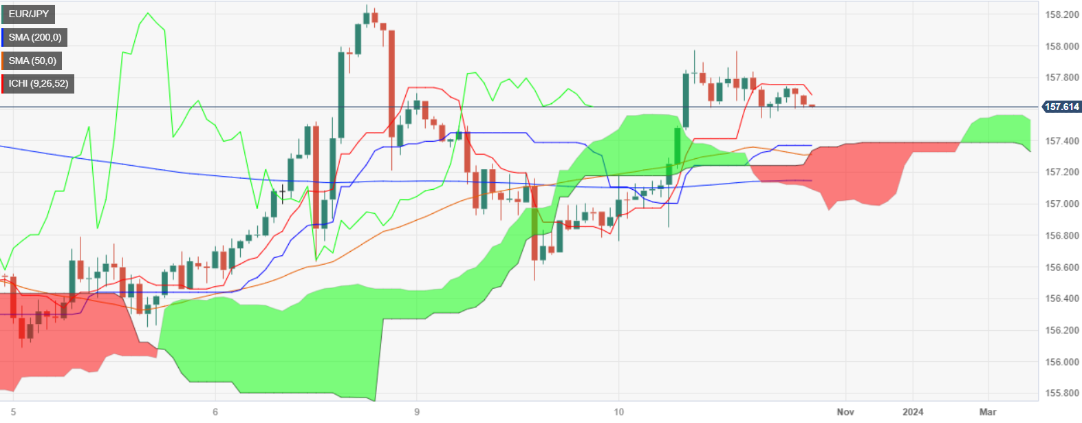 - 一目均衡云图构成上行阻力;若欧元/日圆突破 158.26,则触及 9 月高点。