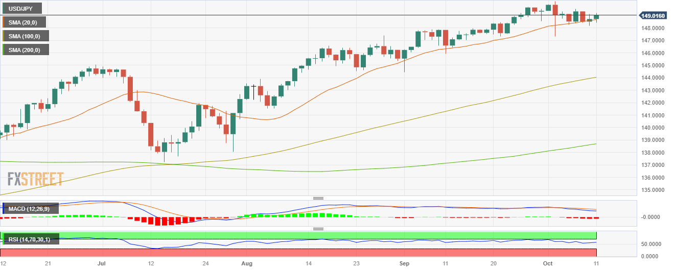 周三,美元/日圆进一步上涨,回升至 149.00 以上。炙手可热的生产者物价指数(PPI)未能引发美元大幅波动,该货币对的走势似乎取决于日本央行(BoJ)的鸽派立场。本交易日晚些时候,市场将关注9月联准会会议纪要,以寻找有关前瞻性指引的缐索。