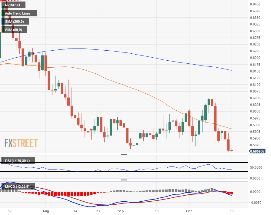 纽元/美元周三进一步下滑,跌至2023年低点,并将在0.5846下方创下年内新低。
