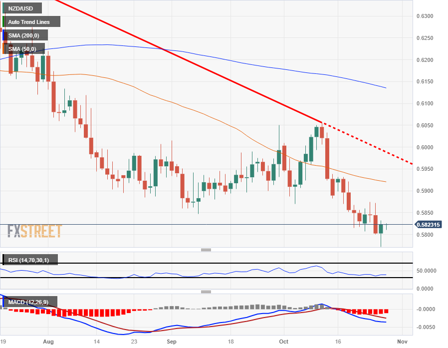 纽元兑美元创下 2023 年新低 0.5772,随后出现温和反弹