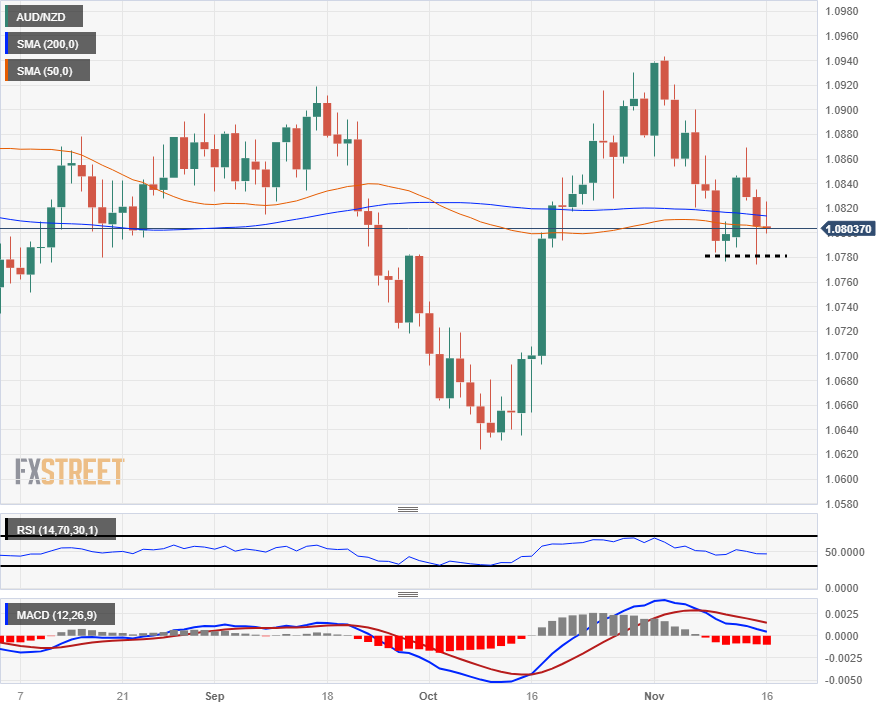 - 澳元/纽元周三跌至 1.0774 低点,随后反弹至 1.0800 上方。