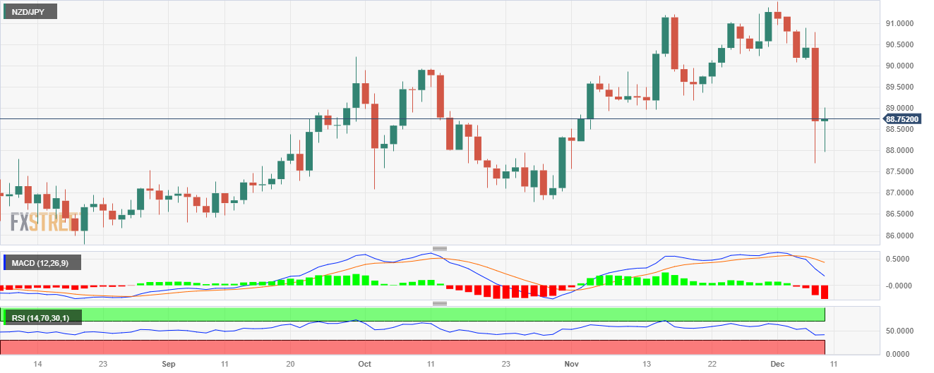 上周末,纽元/日圆跌至 88.75,跌幅近 0.25%,此前一度触及 100 日简单移动均缐(SMA)87.95 附近的低点。