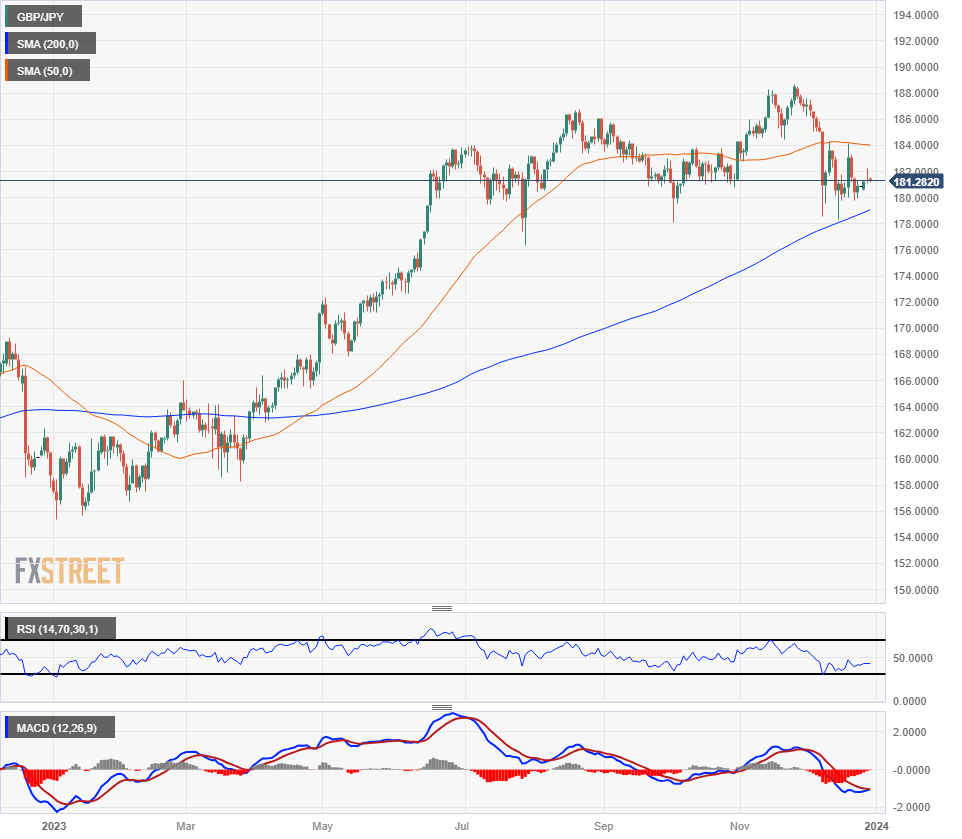 英镑/日圆冲高 182.10 点失败后,又回到震盪区间,掉头回落接近 181.00 关口。日本央行总裁植田和男重申负利率可能结束的言论后,日圆走强。