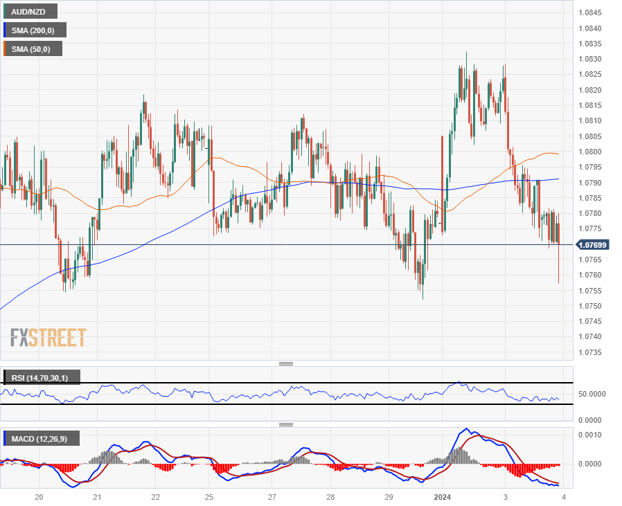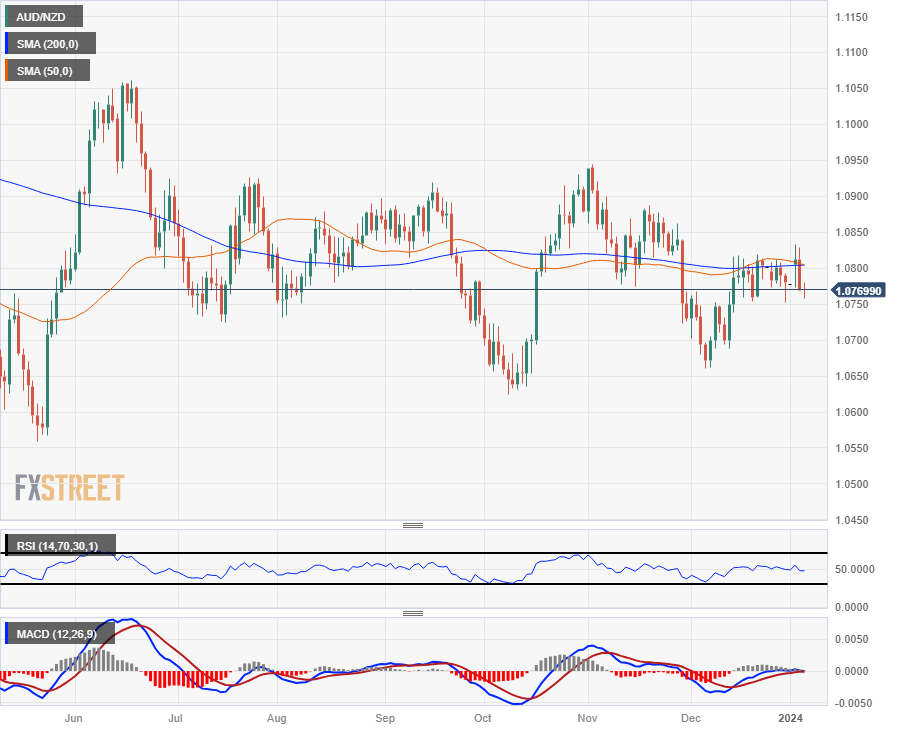澳币/纽元技术分析:维持走低,正测试1.0770下方