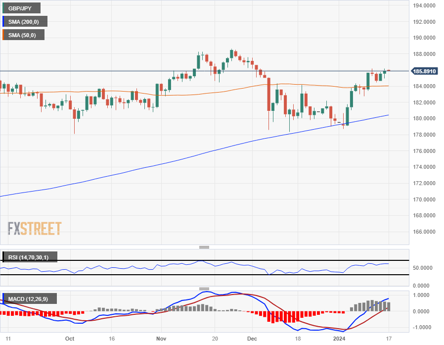 英镑/日圆周二短暂触及数周新高 186.00 关口上方,原因是日圆(JPY)全盘下跌,而英镑继英国劳动力数据显示 12 月份新增就业岗位强于上月之后出现短暂上扬。