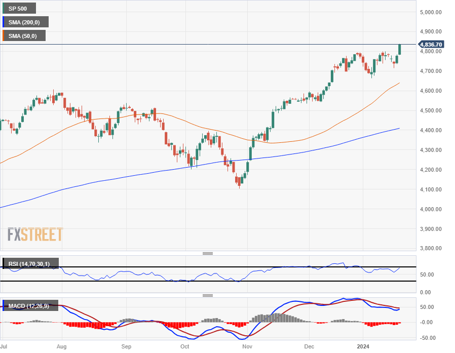 标准普尔 500 主要股指攀升了近 1.25%,创下历史新高,上周五报收于 4839.81 美元,当天上涨了 58.87 点。