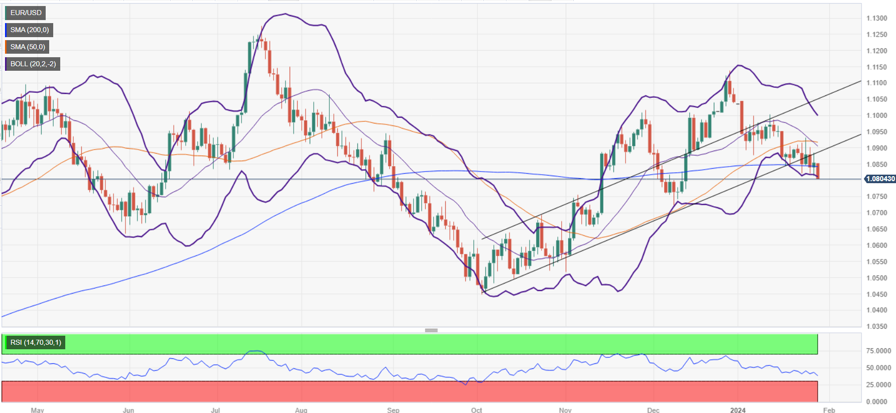 因欧洲央行评论,欧元兑美元在FOMC决议前跌向1.0800