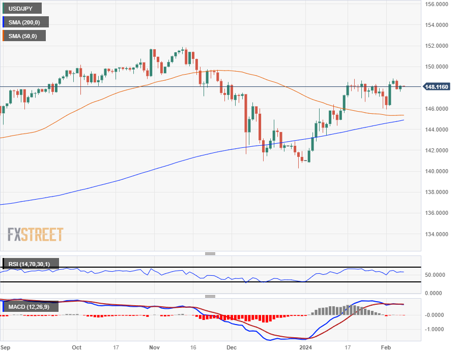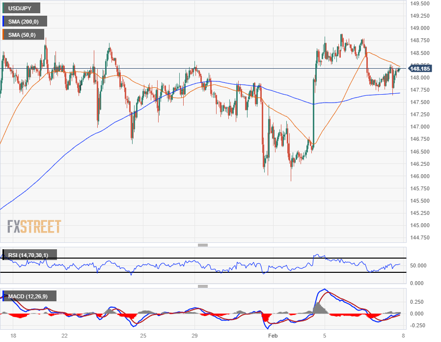 美元/日圆陷入近期拥堵,美元/日圆挣扎于 200 小时简单移动均缐(SMA)147.75 附近的技术水平,美元/日圆徘徊在 148.00 关口附近。