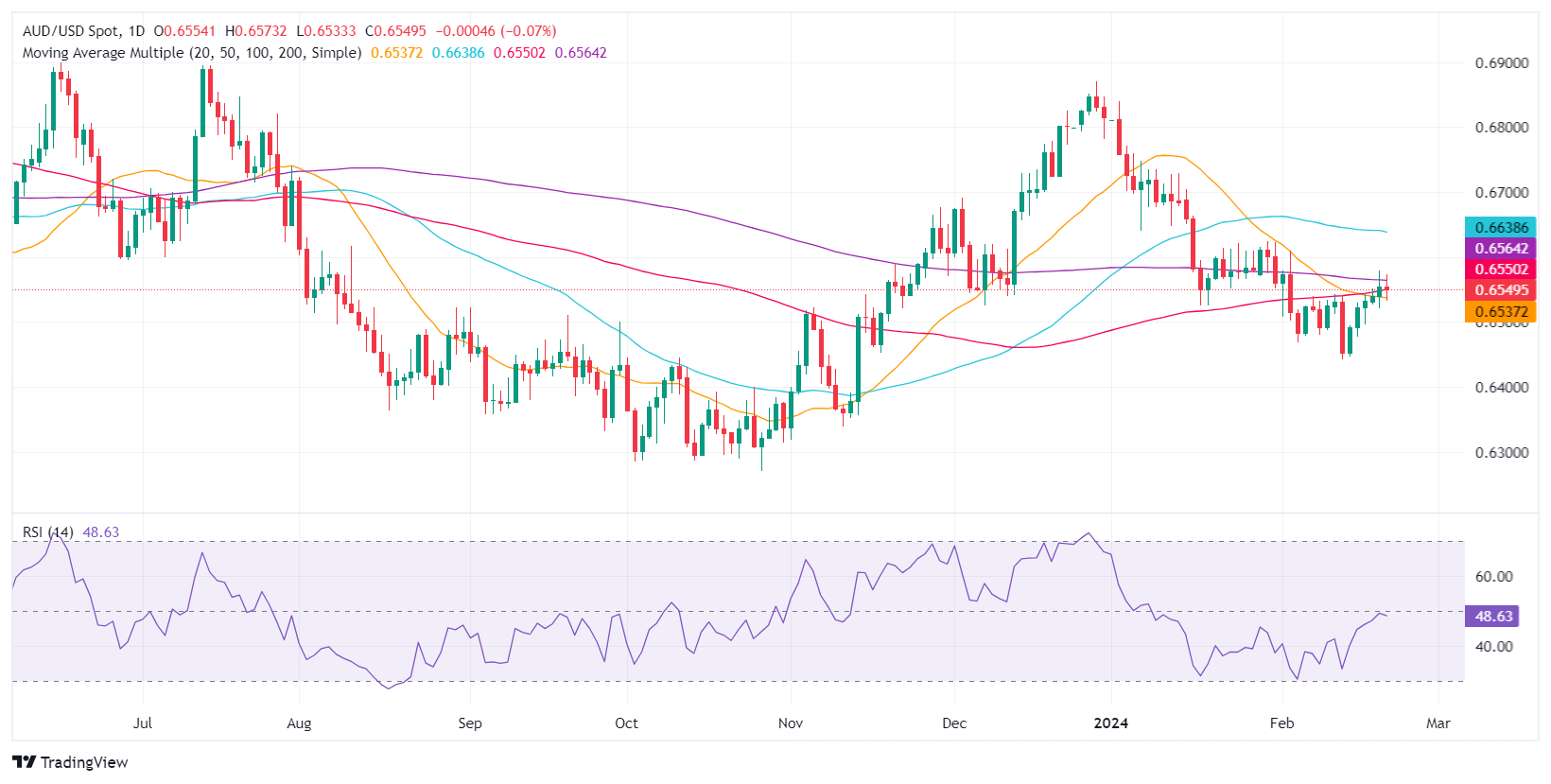 - 联准会因通膨担忧而重申对降息犹豫不决后,澳元/美元小幅下跌,报 0.6550。