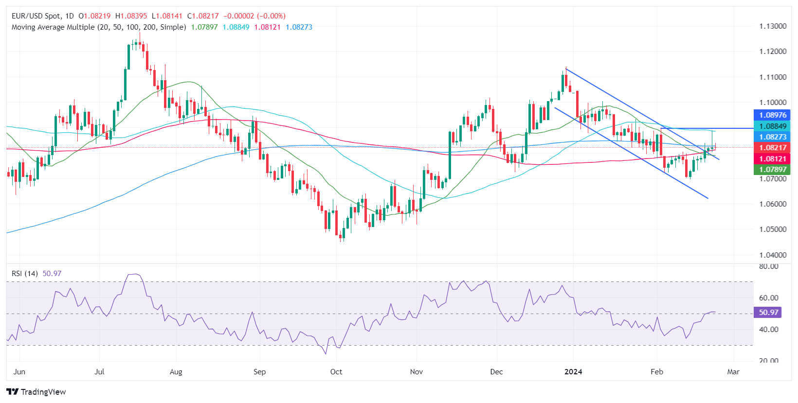 德国经济萎缩,商业景气略有改善,欧元/美元在 200-DMA 附近徘徊