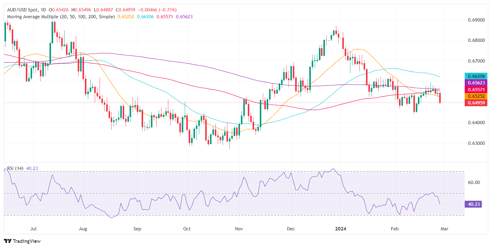 纽储行持鸽派立场,澳元兑美元周三下跌 0.73%,此前澳洲公布了稳健的通膨报告。亚市𫔭盘后,澳元兑美元报0.6496,基本持平。