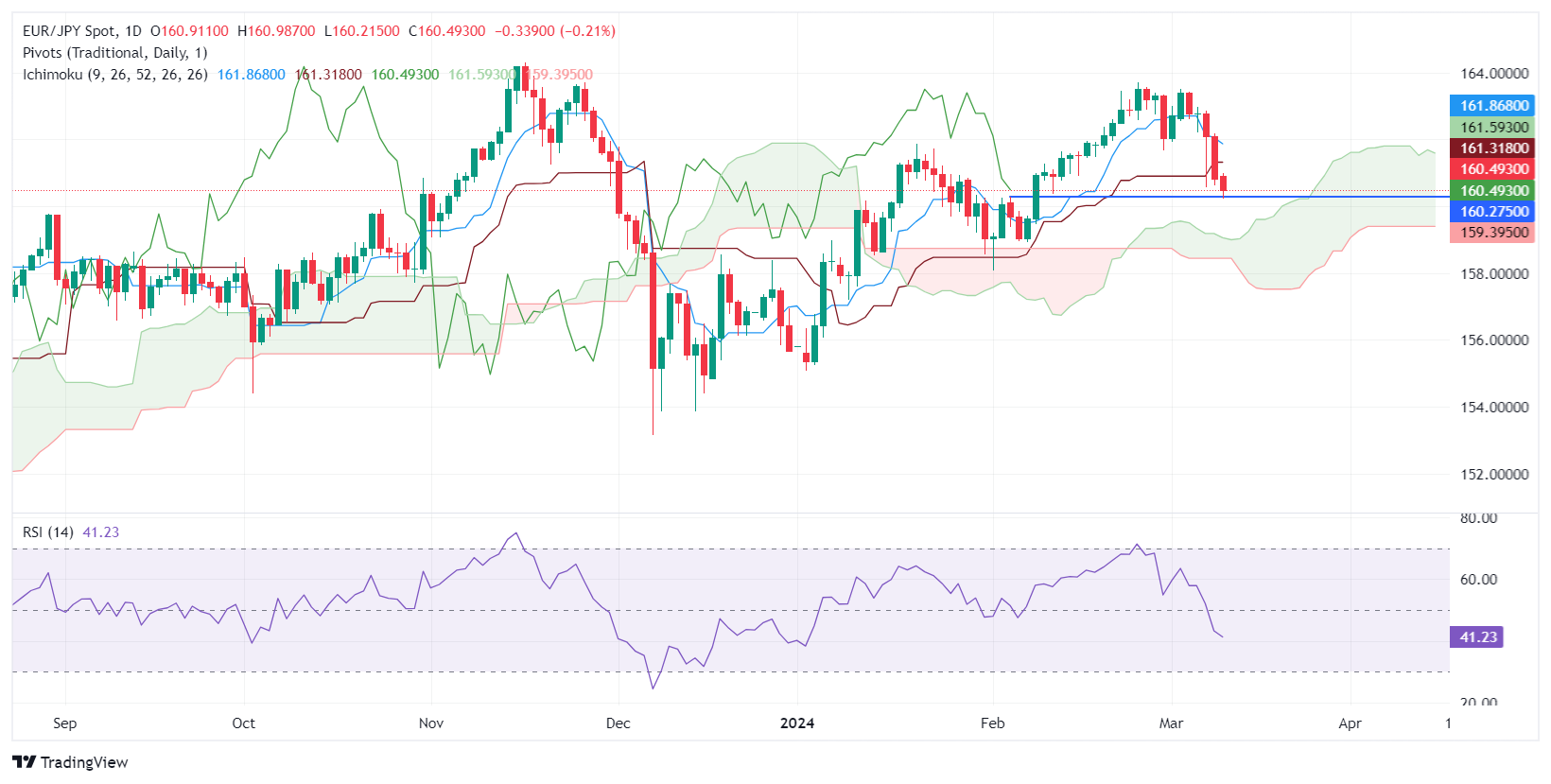 自上周以来,欧元/日圆跌幅扩大至超过1.70%,跌破了关键支撑位,如Tenkan和Kijun Sen,以及161.00心理关卡。如果卖方仍占主导地位,该货币对可能向一目均衡表云(Kumo)顶部 158.90/159.00 逼近,但首先必须跌破 160.00 大关。另一方面,如果𧹒方进场并将汇价推高至 161.00 以上,则有望测试 161.31 的 Kijun-Sen 水平。