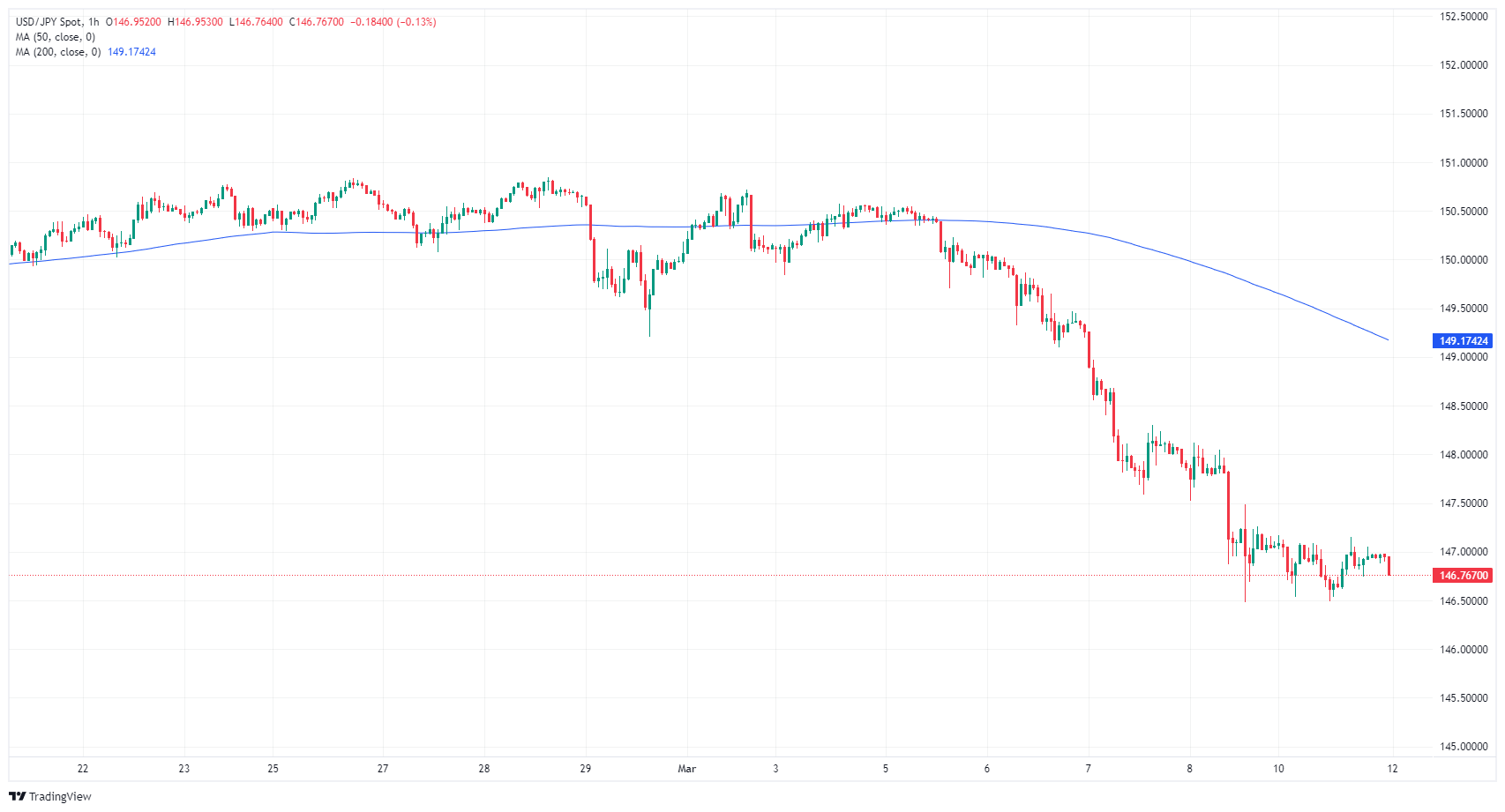 - 美元/日圆继上周下跌后,目前仍处于 147.00紧下方。