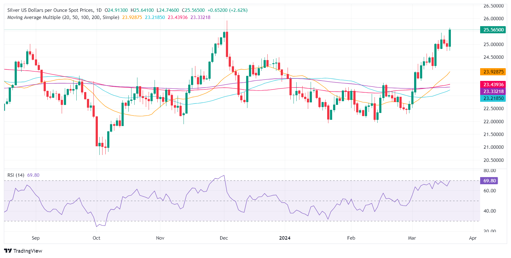 白银价格分析:联准会决议后XAG/USD飙升,目标指向26.00美元