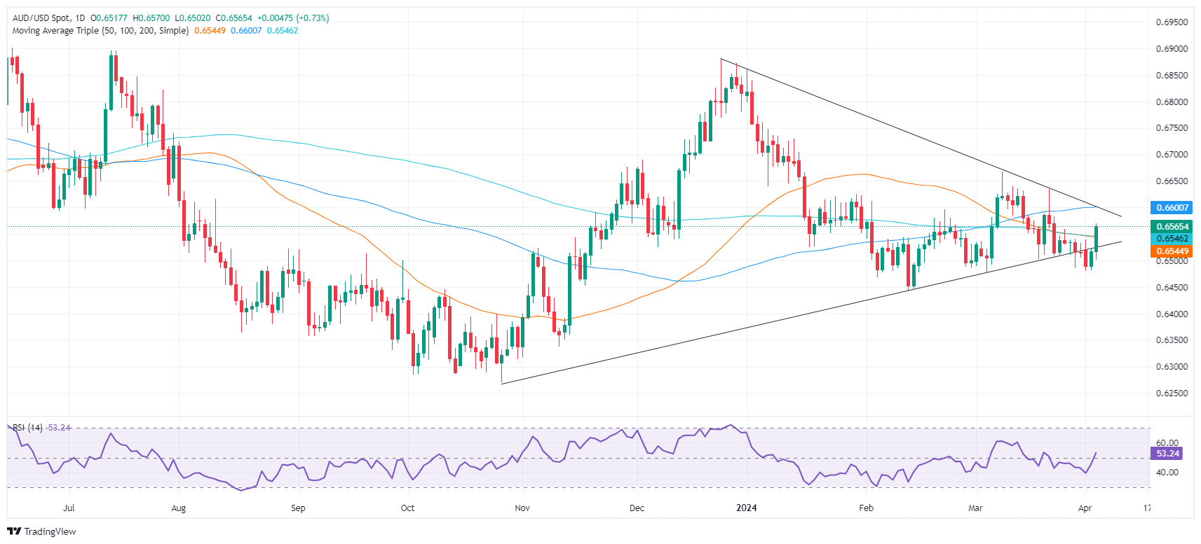由于华尔街结束了连续两天的下跌,澳币也从乐观的市场情绪中受益。美国公债殖利率持平,对澳元构成利空。美元指数下跌超过 0.50%,跌至 104.22。