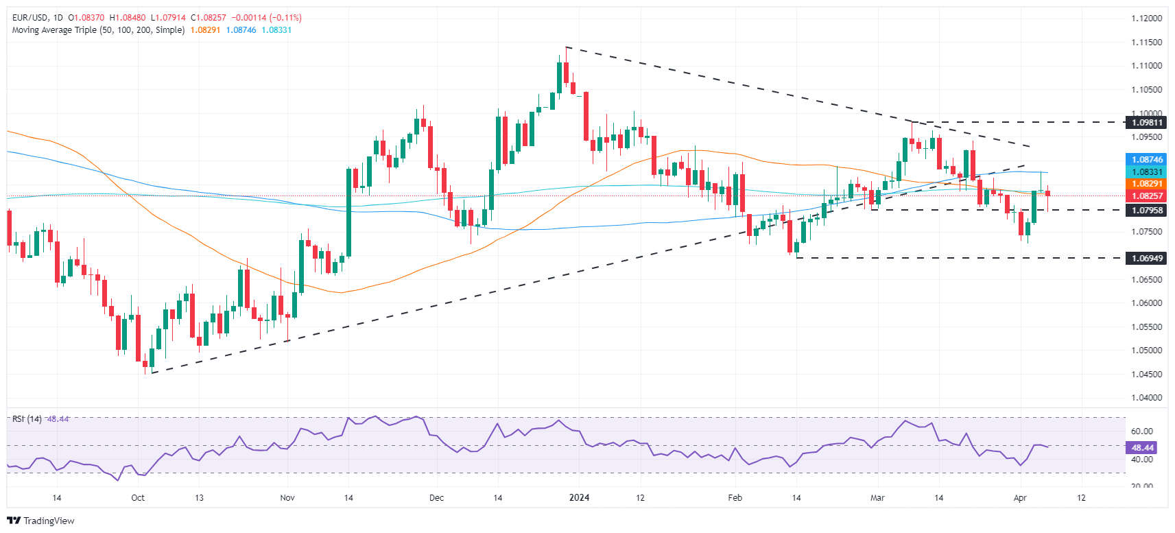 - 欧元兑美元进一步下行,技术面显示有可能跌破 1.0800 临界点。