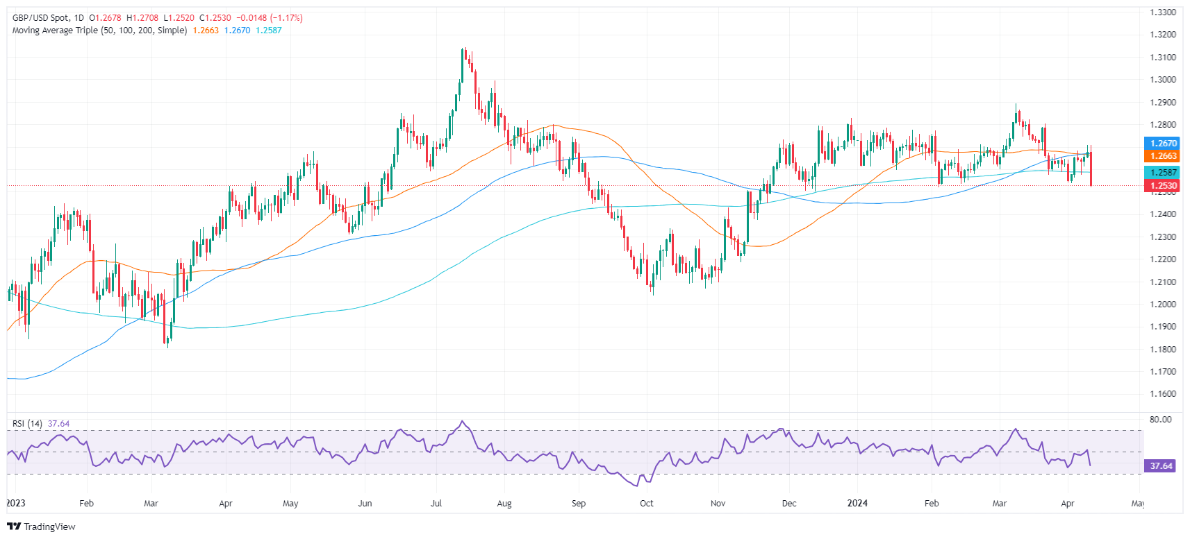 周三,美国通膨数据公布后,美国时段尾盘英镑兑美元暴跌,跌幅超过 1%。市场维持联准会将减少降息次数的预期引发市场美元受到追捧,美元指数创下了今年迄今新高。英镑兑美元继触及 1.2708 的高点后交投于 1.2534。