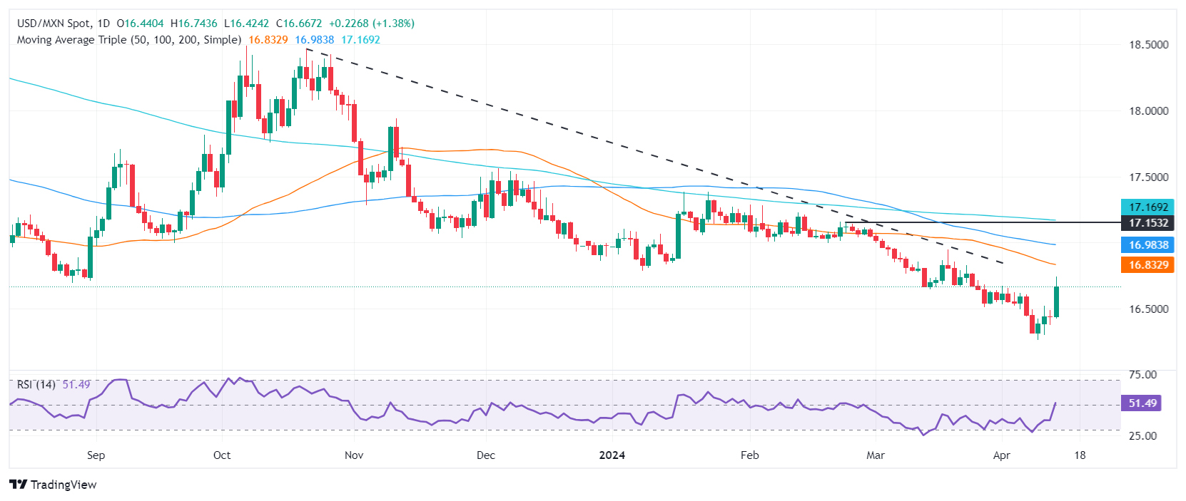 技术分析:墨西哥比索屈服于美元,美元/墨西哥比索反弹至 16.60区域