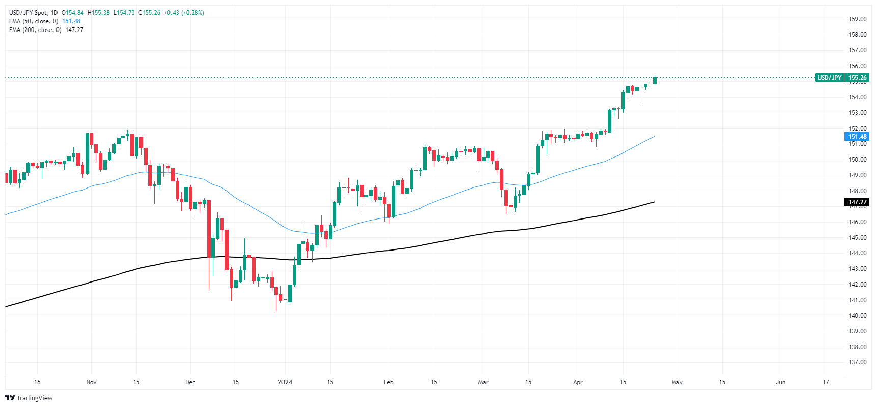 随著该货币对创下三十多年来的最高水平,美元/日圆预计将连续第四个月收涨。该货币对较 3 月 146.50 附近的上一波段低点上涨了近 6%,自 2024 年初突破 200 天指数移动平均缐 (EMA) 以来,美元/日圆已累计上涨近 8%。