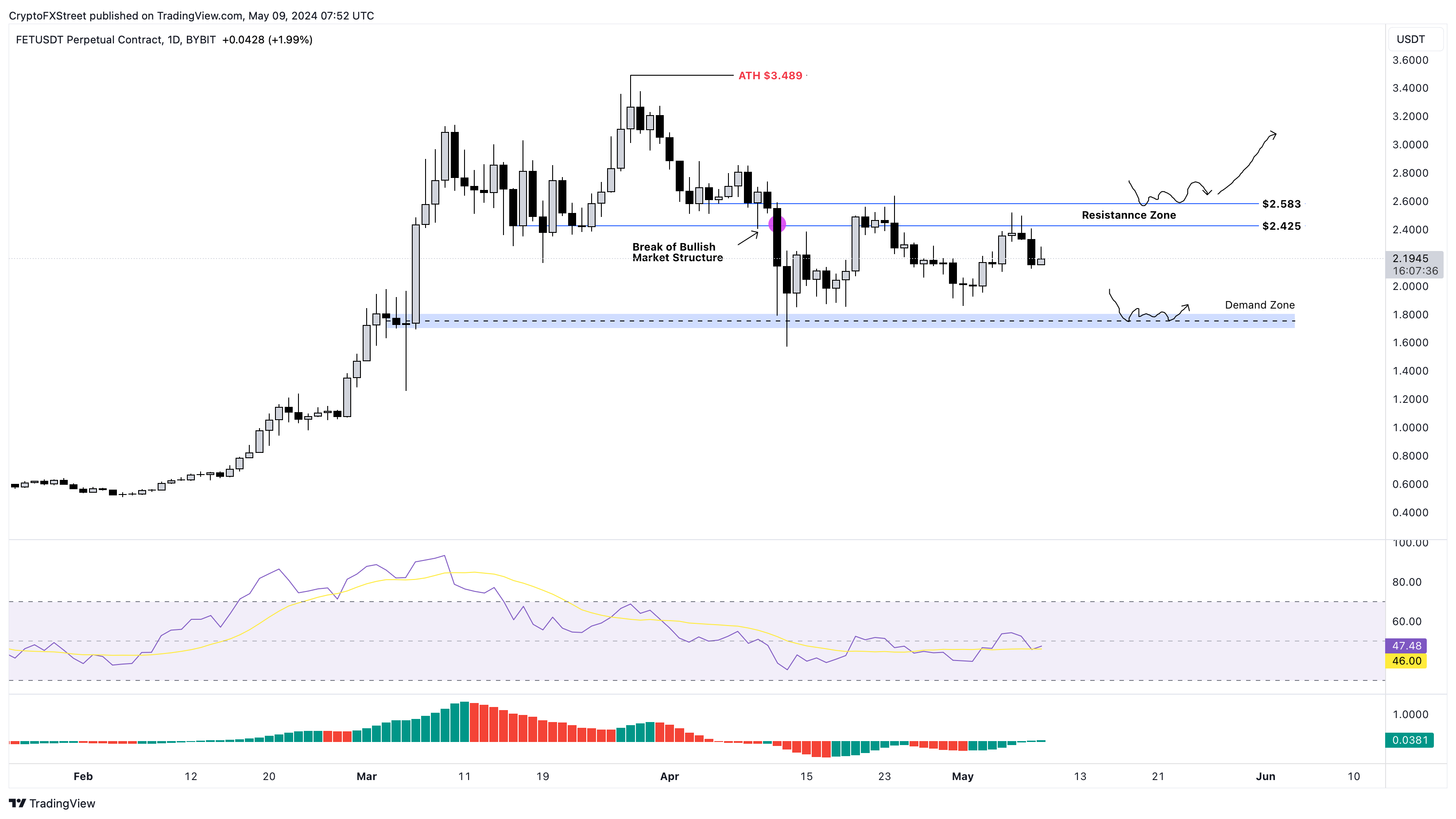对FET爱好者来说,跌至1.700 - 1.805美元的需求区是一个保守的前景。如果发生这种情况,那将是考虑购𧹒基于人工智慧的山寨币的好时机。