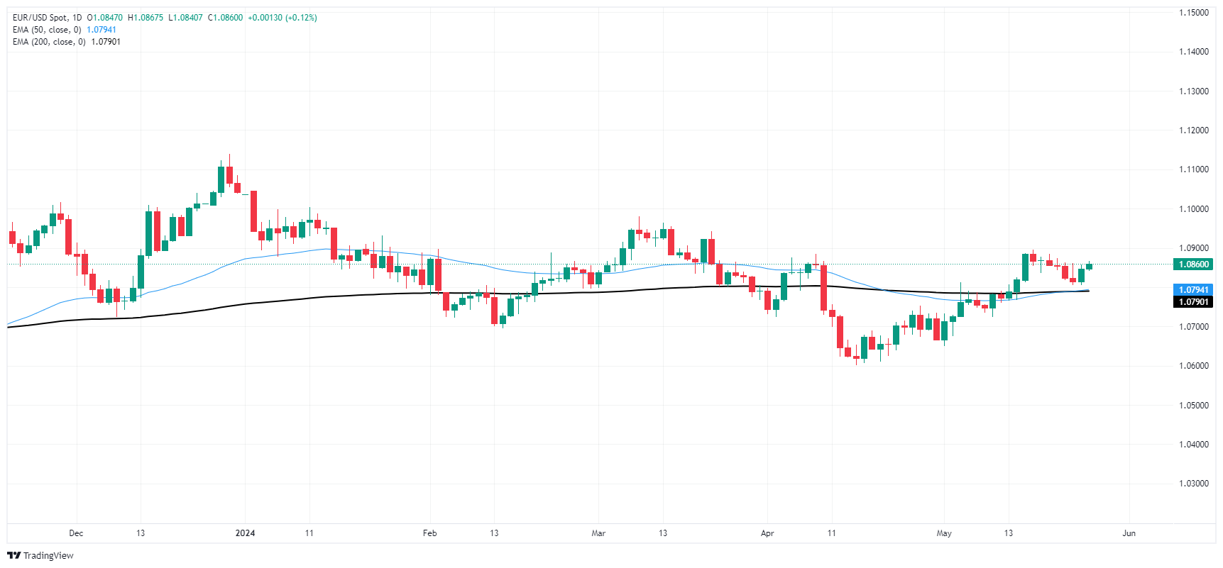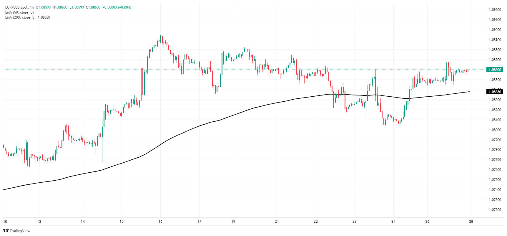 欧元兑美元徘徊在 1.0860 附近,市场再次关注本周联准会官员讲话
