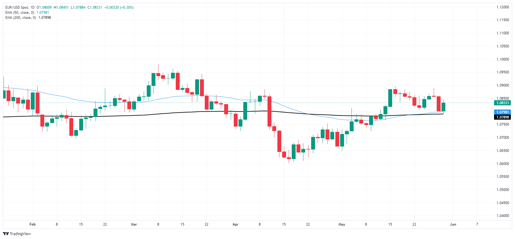 - 欧元/美元在跌至 1.0790 美元后反弹至原有区间。