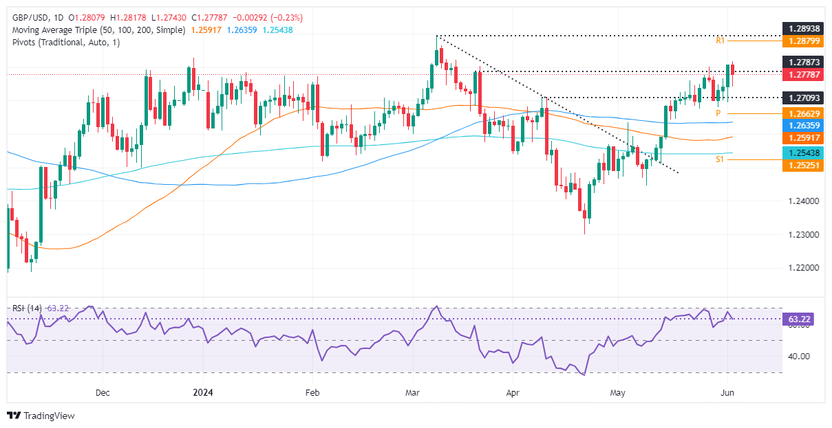 英镑兑美元价格分析:从三个月高点回撤,跌破 1.2800