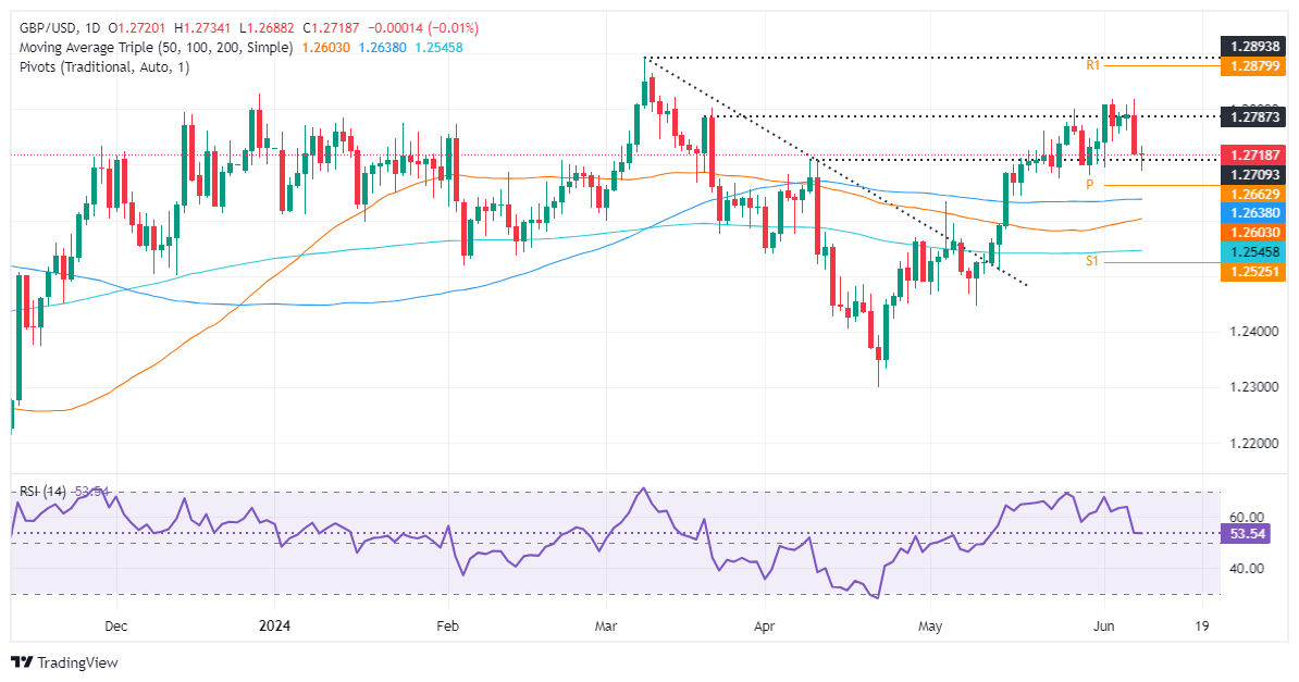 英镑兑美元价格分析:触及7日低点后在1.2700附近盘整