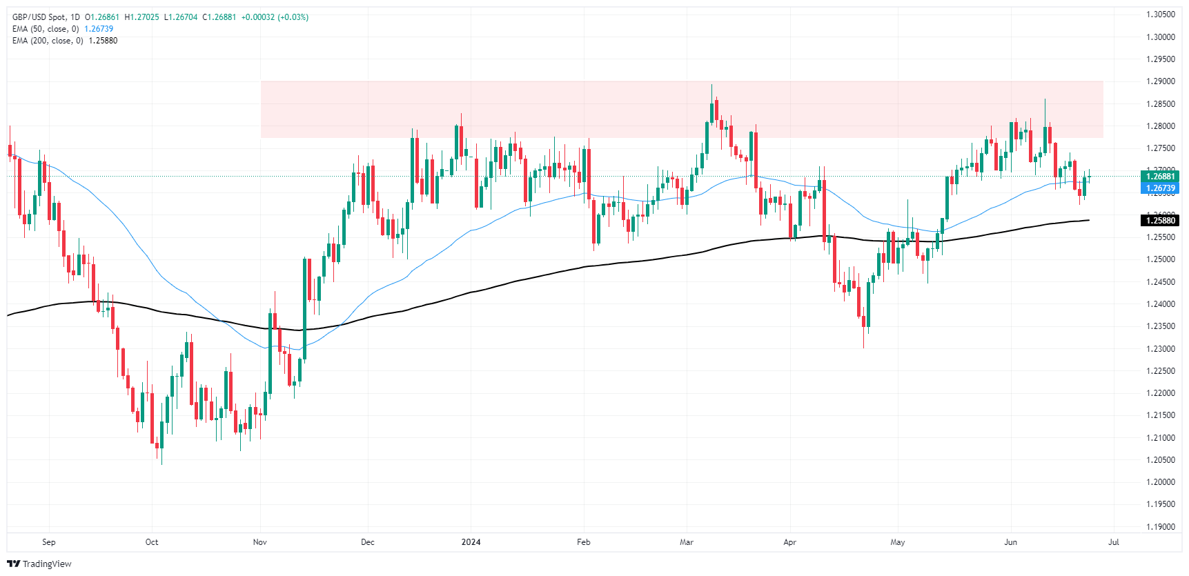 - 英镑兑美元周三盘整,测试 1.2700。